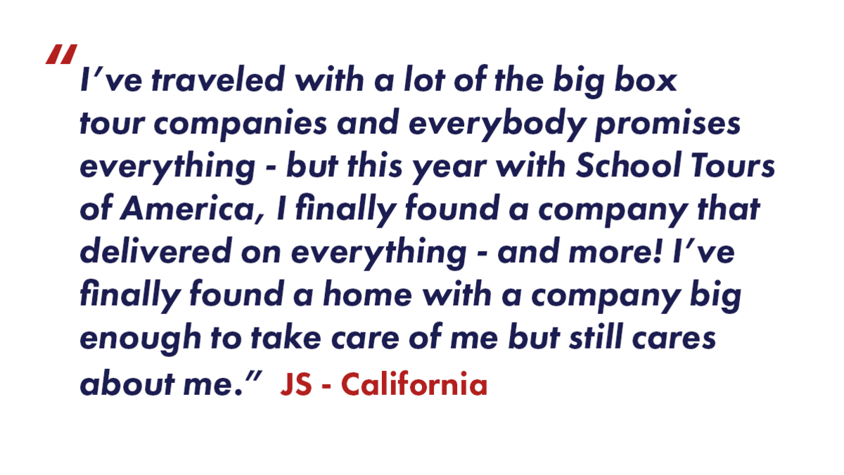 School Tours of America maintains a 24-hour, toll-free emergency phone number (866-491-1543) exclusively for students and parents.